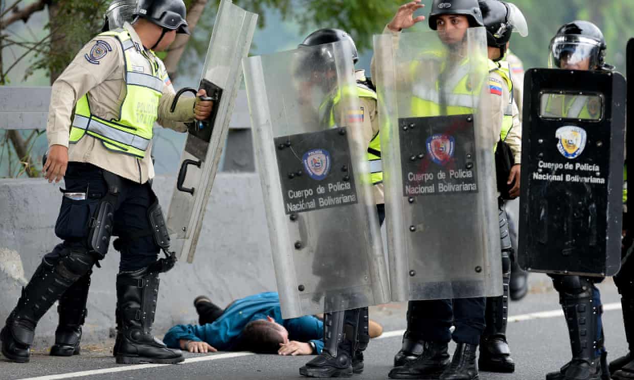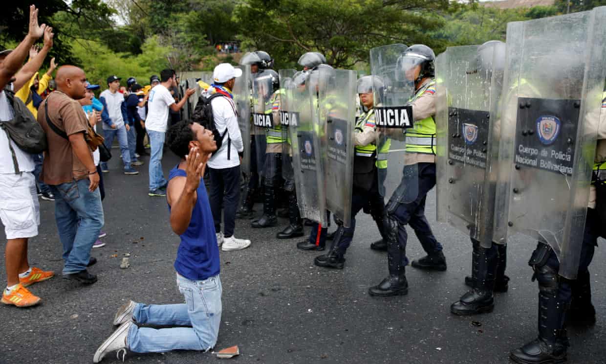 Братская Венесуэла уже в российском будущем. После нефтяного избилия, противосёяния пиндосам и раскулачивания олигархов наступило похмелье: без всяких войн и стихийных бедствий объявлено чрезвычайное положение. Знакомьтесь и готовьтесь: Это Национальная гвардия на работе:   Сдвинули время еще на полчаса и предложили женщинам не пользоваться фенами, чтобы сэкономить электроэнергию. И недавно так любимого национального лидера матерят почем зря.