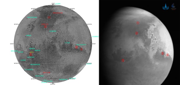 The photo was taken from about 1.4m miles away (2.2m kilometres), said the CNSA, with the spacecraft since reaching 1.1 million kilometres from the planet.