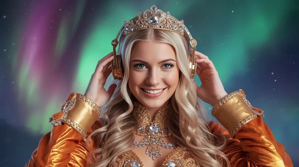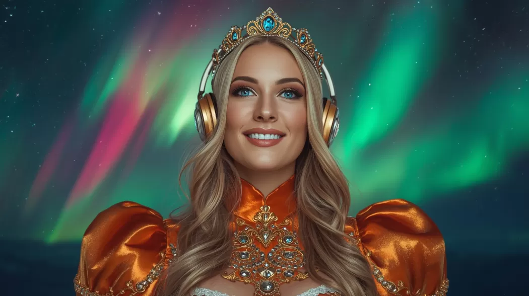 Игорь смотрел на экран ноутбука на девушку, которую он сгенерировал прошлым вечером: прекрасная девушка с наушниками, из правого уха — тонкая линия, похожая на солнечный парус, из левого — волнистая лента северного сияния. Он думал об этой картинке как о притче: два потока, две перспективы, в одно тело. Ночью, когда дом затаил дыхание, из рисунка на экране, вышла она — Королева северного сияния. Её движения были похожи на то, как меняется тон неба: мягко, но абсолютно непреложно.